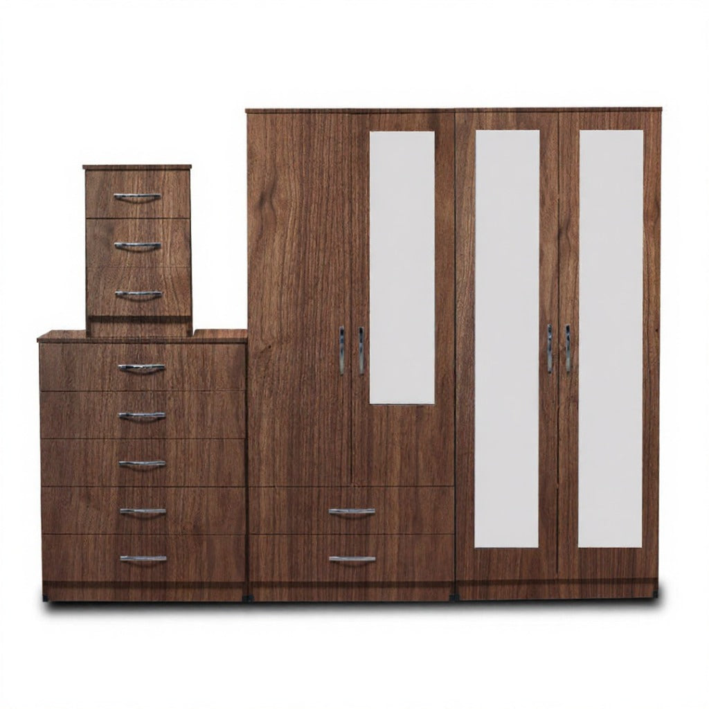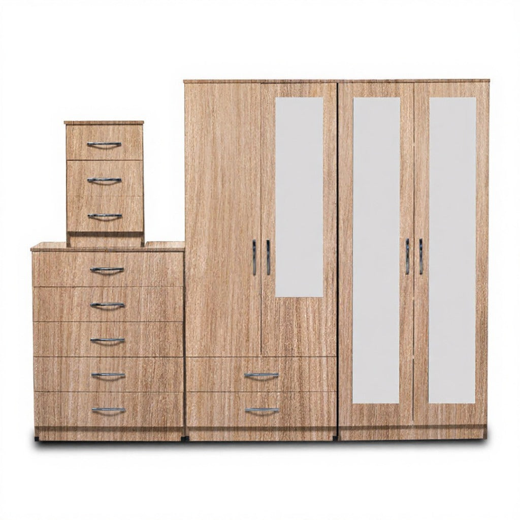 With ample hanging and shelving space, along with a matching chest of drawers and bedside tables, this set is designed to keep your space organised and beautiful.