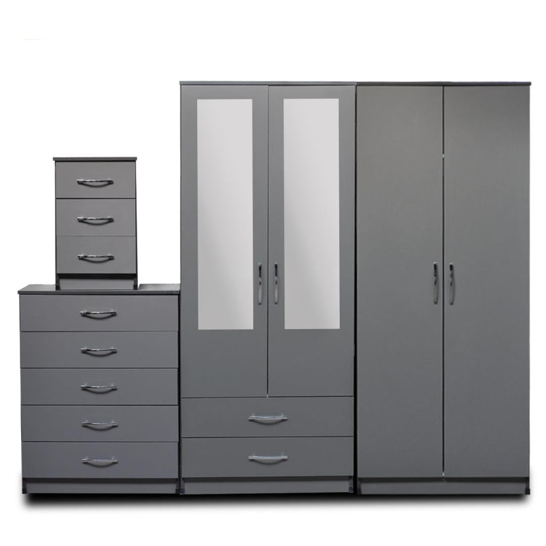 Transform your bedroom with the elegant 2-Half Mirror 4-Door Wardrobe Set with 2 Bottom Drawers — a perfect combination of beauty and practicality.