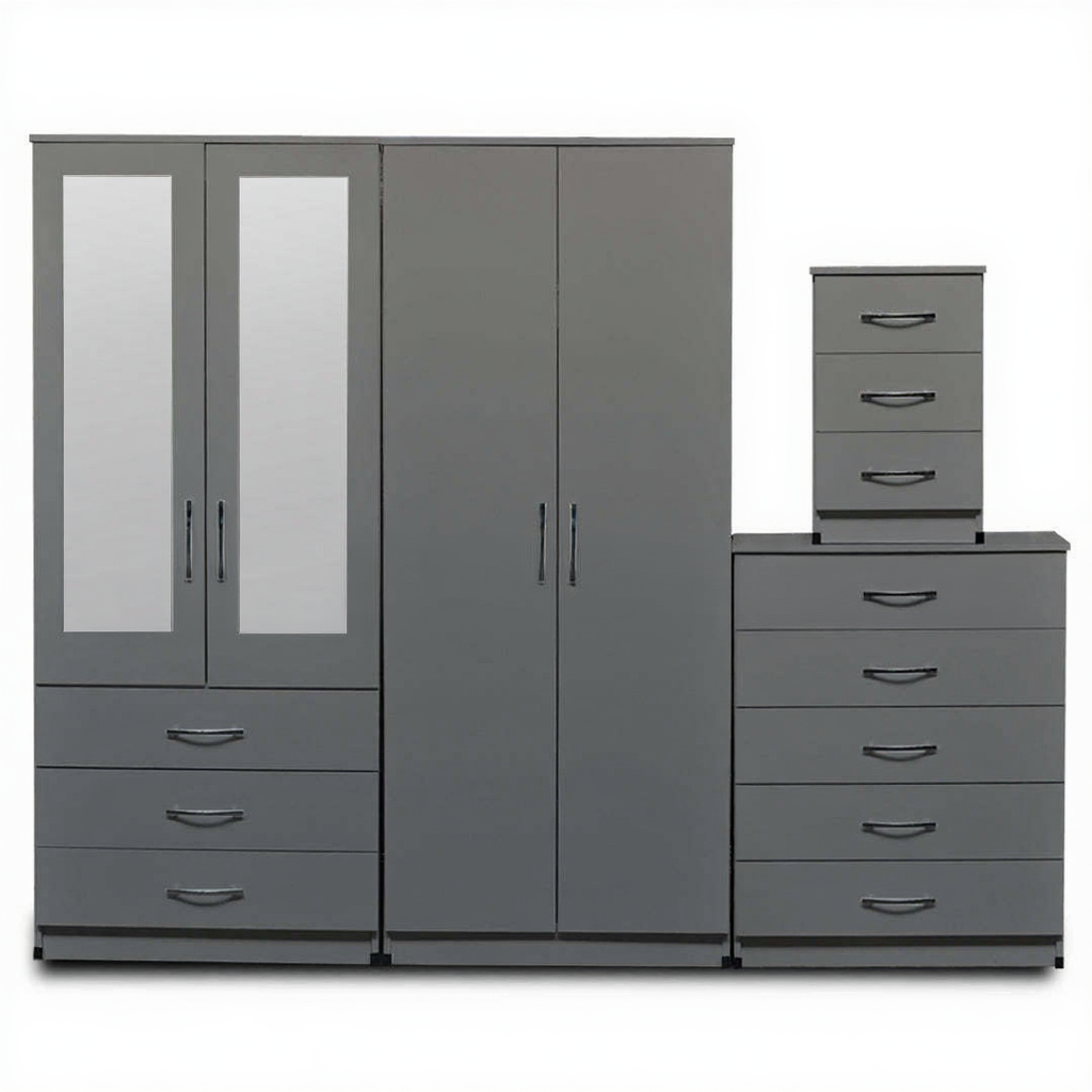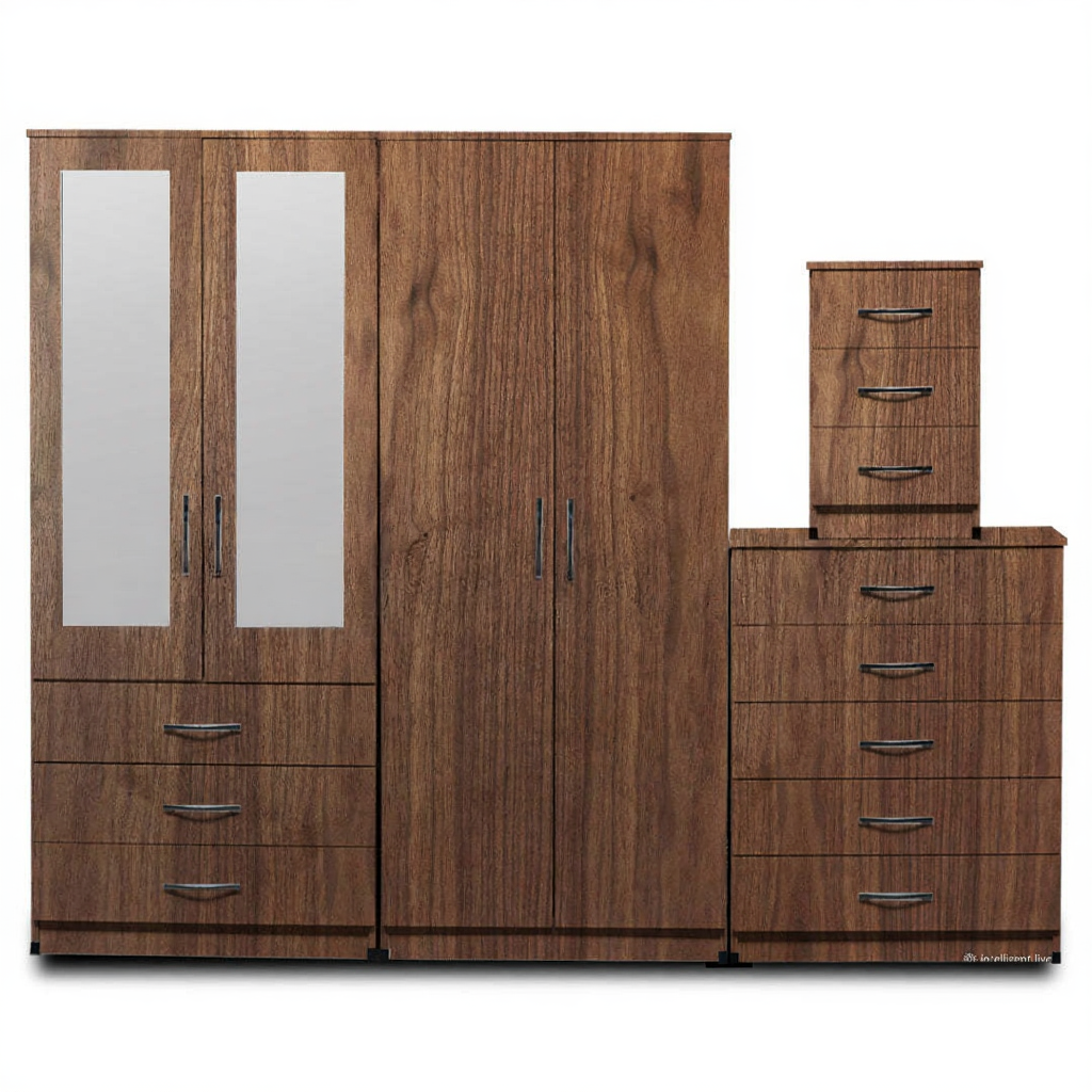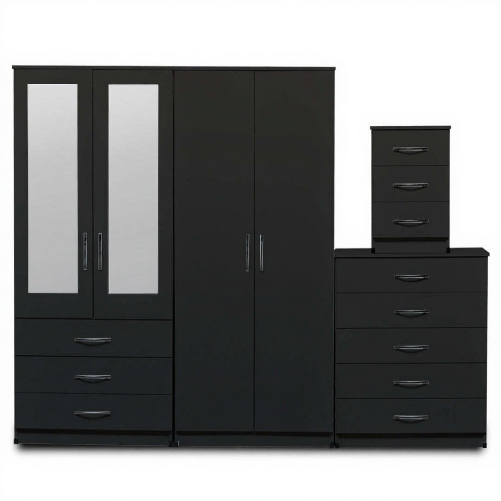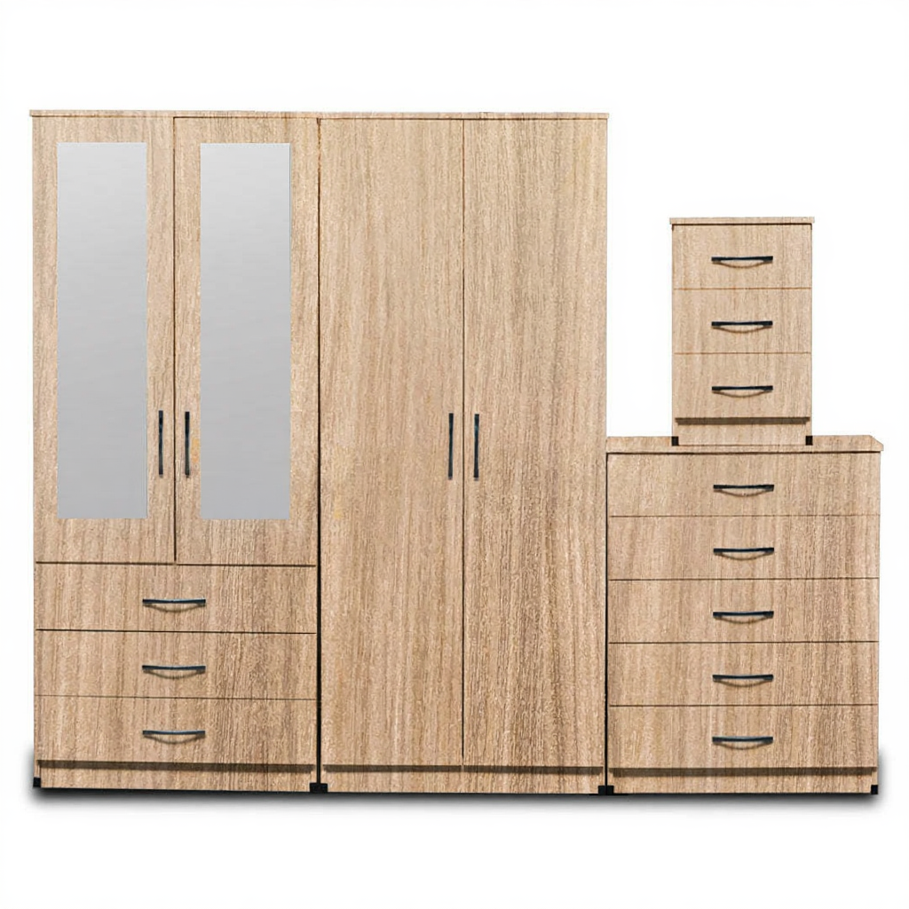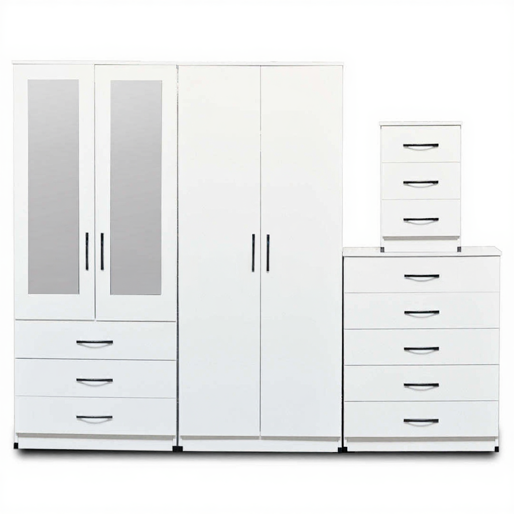 Add a modern touch to your bedroom with the elegant 2-Half Mirror 4-Door Wardrobe Set, crafted for both functionality and style.