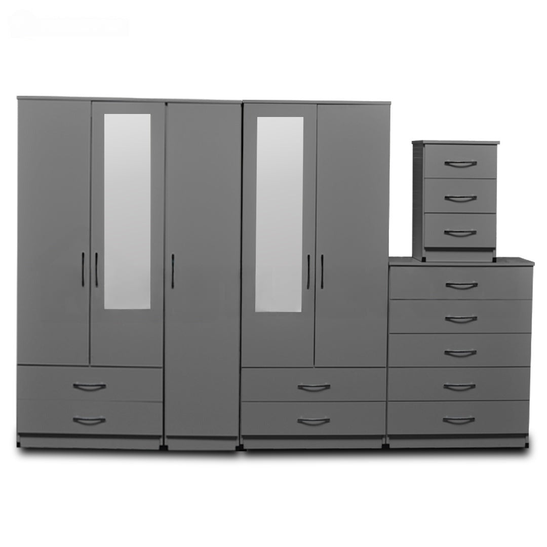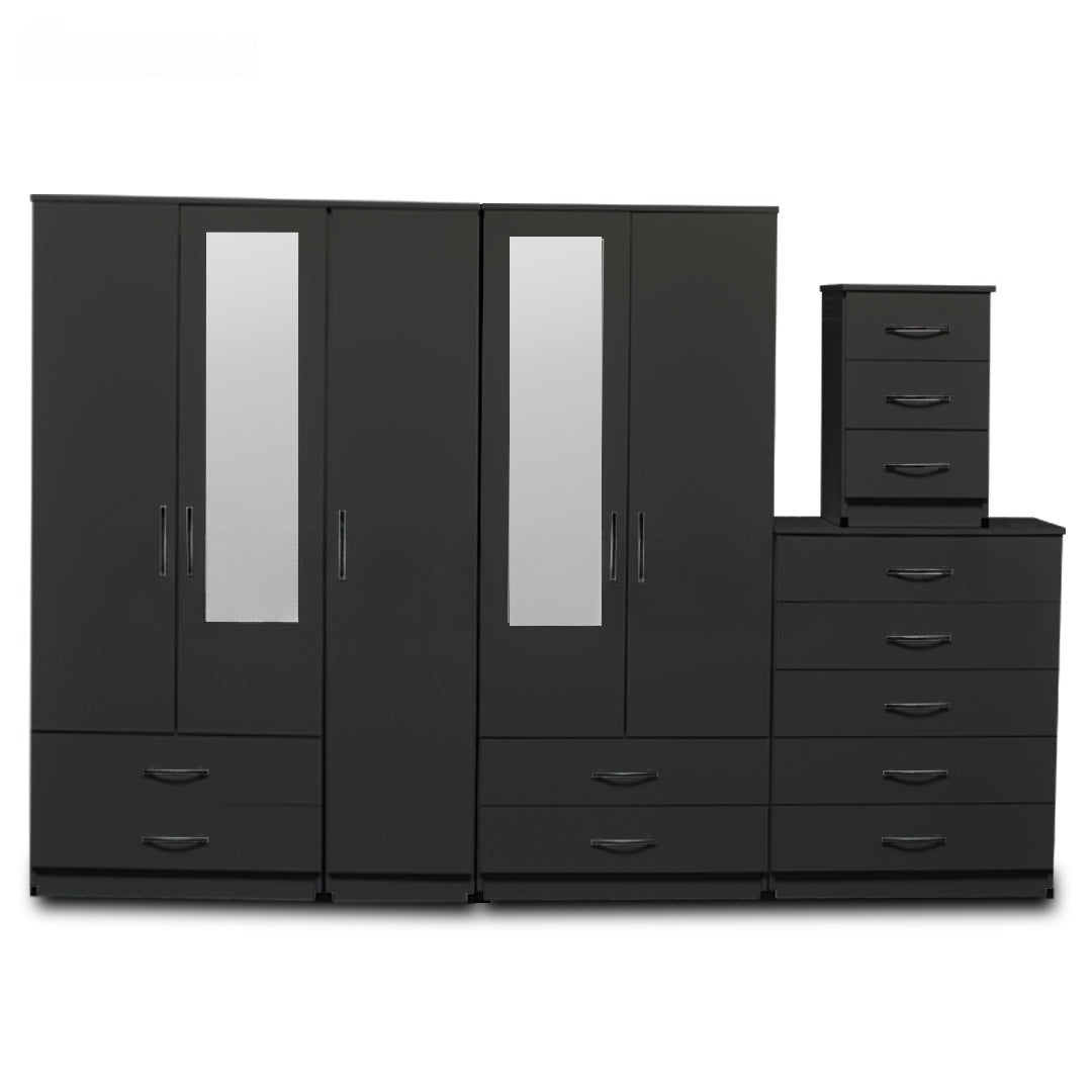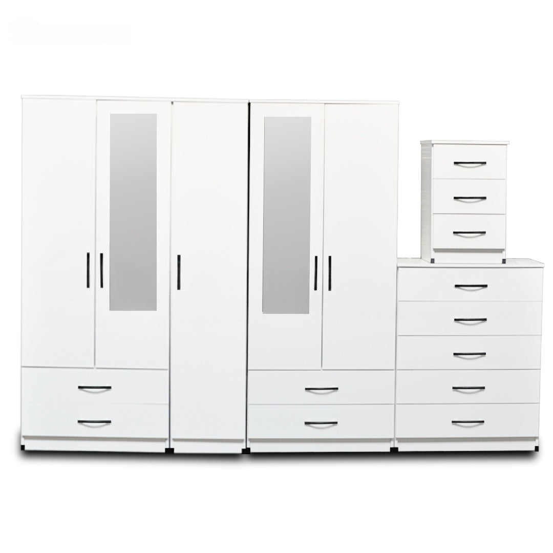 The 2-Half Mirror 5-Door Wardrobe Set combines modern design with ample storage capacity and elegant mirrored detailing.